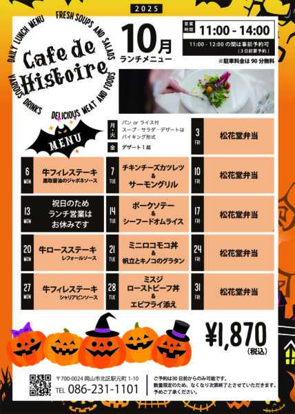 9月 毎週火曜日 洋風ランチ (7日・14日・21日・28日)