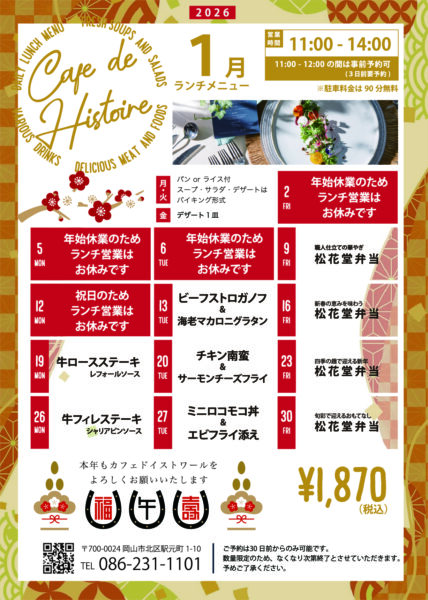 ランチのご予約は、カフェ・ド・イストワールのホームページからお願いいたします