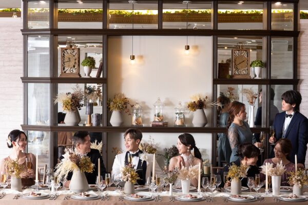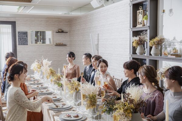 • 友人を招いた少人数婚:家族に加えて、特に親しい友人も招く10〜20名規模の会食型ウエディング