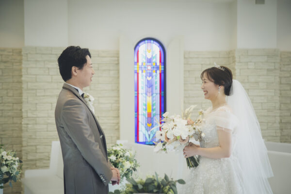 挙式前、 チャペルで迎えたファーストミート。