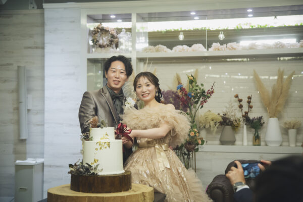 続いてはウエディングケーキ入刀。